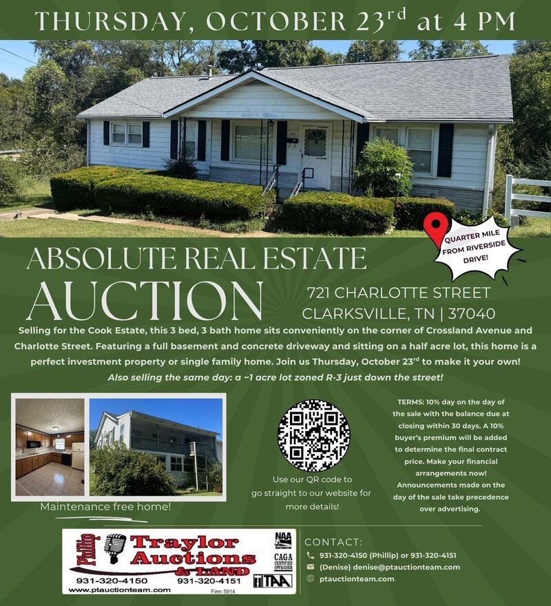 Selling for the Cook Estate, this 3 bed, 3 bath home sits conveniently on the corner of Crossland Avenue and Charlotte Street. Featuring a full basement and concrete driveway and sitting on a half acre lot, this home is a perfect investment property or single family home. Join us Thursday, October 23rd to make it your own!